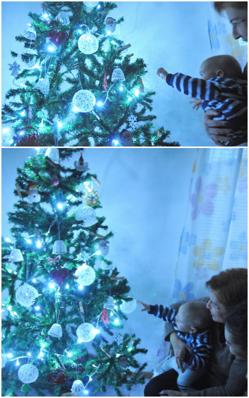 Am ajutat la rupt biscuiţii în bucătele mici pentru salam şi la întins hainele ude la uscat. Aşa cum ştiu eu… am trântit biscuiţii „de toţi pereţii”, i-am dat de masă şi-am încercat zadarnic să mănânc unul pe ascuns pentru că ochii de viperă ai mamei m-au dat de gol. Cu hainele a fost mai simplu. Fiind puse în lighean, le-am scos de acolo, le-am scuturat cum am putut şi le-am întins pe jos. Da’ ce, acolo nu se pot usca? Apoi, am ajutat la împodobit bradul! La asta am ajutat-o pe mătuşa Irina, că ea ni l-a împodobit. Mama doar a comentat de la distanţă! M-au fascinat luminiţele puse pe el! Ce l-aş fi scuturat de îmi dădeau voie!!