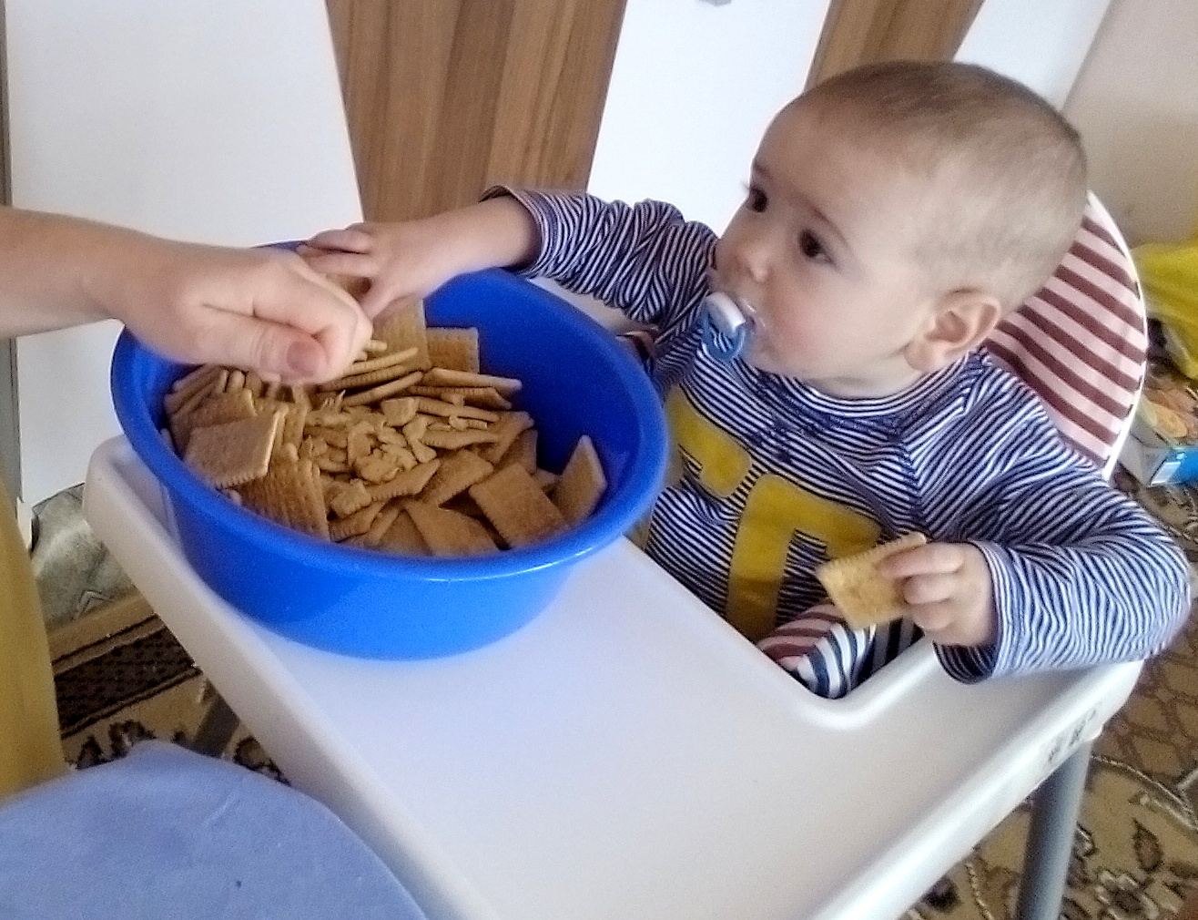 Încep să prind puteri, merg în patru labe, mă ridic în picioare cam de tot ce prind în cale. Fac cu mâna în semn de la revedere, aplaud şi bat palma cu cel din faţa mea! Astea doar când am eu chef şi nu la comandă. Unii spun că sunt încăpăţânat asemeni mamei. Ştiu să mă impun, mai ales când sunt lăsat pe mâna tatălui. El îmi cam face pe plac. În schimb, cu mama nu-i la fel de simplu.